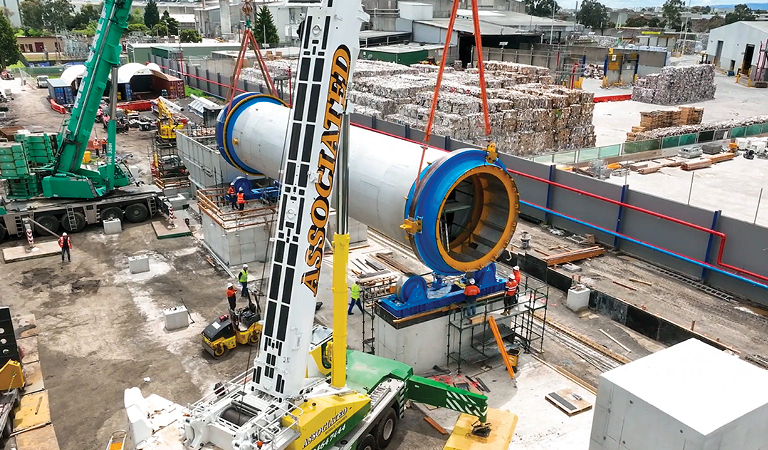 Visy’s Australian-first drum pulper is lifted into position at the company’s Coolaroo paper mill. To facilitate the project Sustainability Victoria leveraged millions in investment from Visy on behalf of the Victorian Government.
